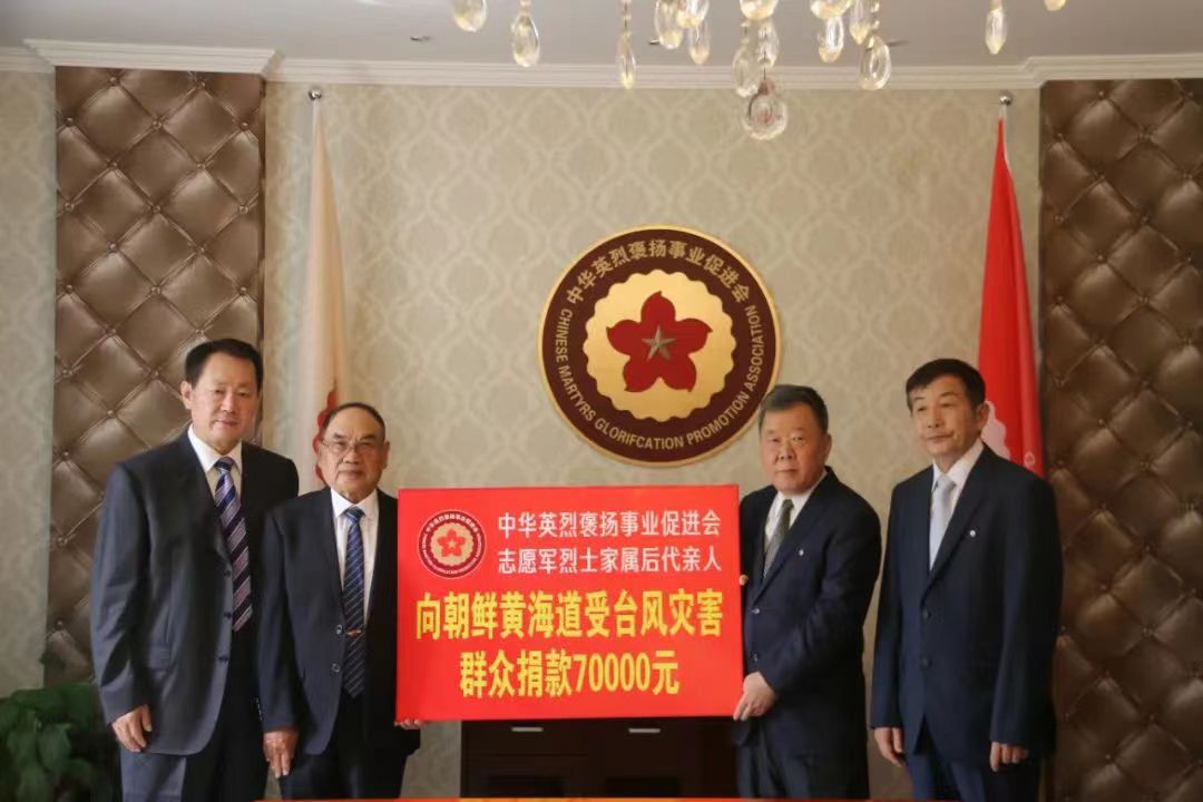 中華英烈褒揚(yáng)事業(yè)促進(jìn)會組織志愿軍烈士后代親人向朝鮮黃海道臺風(fēng)受災(zāi)地區(qū)捐款