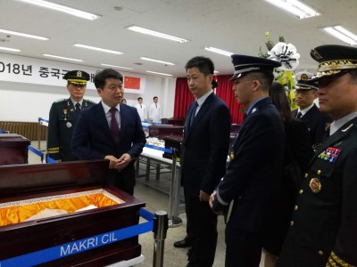 中韓雙方共同舉行第五批在韓中國人民志愿軍烈士遺骸裝殮儀式