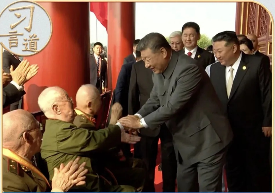 紀(jì)念中國人民抗日戰(zhàn)爭暨世界反法西斯戰(zhàn)爭勝利80周年大會開始前,習(xí)近平總書記登上天安門城樓時,同抗戰(zhàn)老戰(zhàn)士老同志代表親切握手,向他們表示崇高敬意。